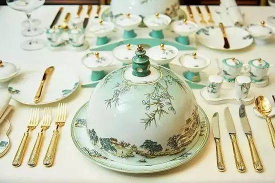 以杭州西湖文化为背景,创作出工笔兼写意的画面(文创内容),再以创意方式巧妙应用于餐具结构上,并将“三潭映月”中的石塔形象创意设计在半球形的尊顶盖结构上(文创内容与结合方式),通过中国独有的江南文化与瓷器产品进行创意的艺术结合,整体展现了中国江南的文化气韵。